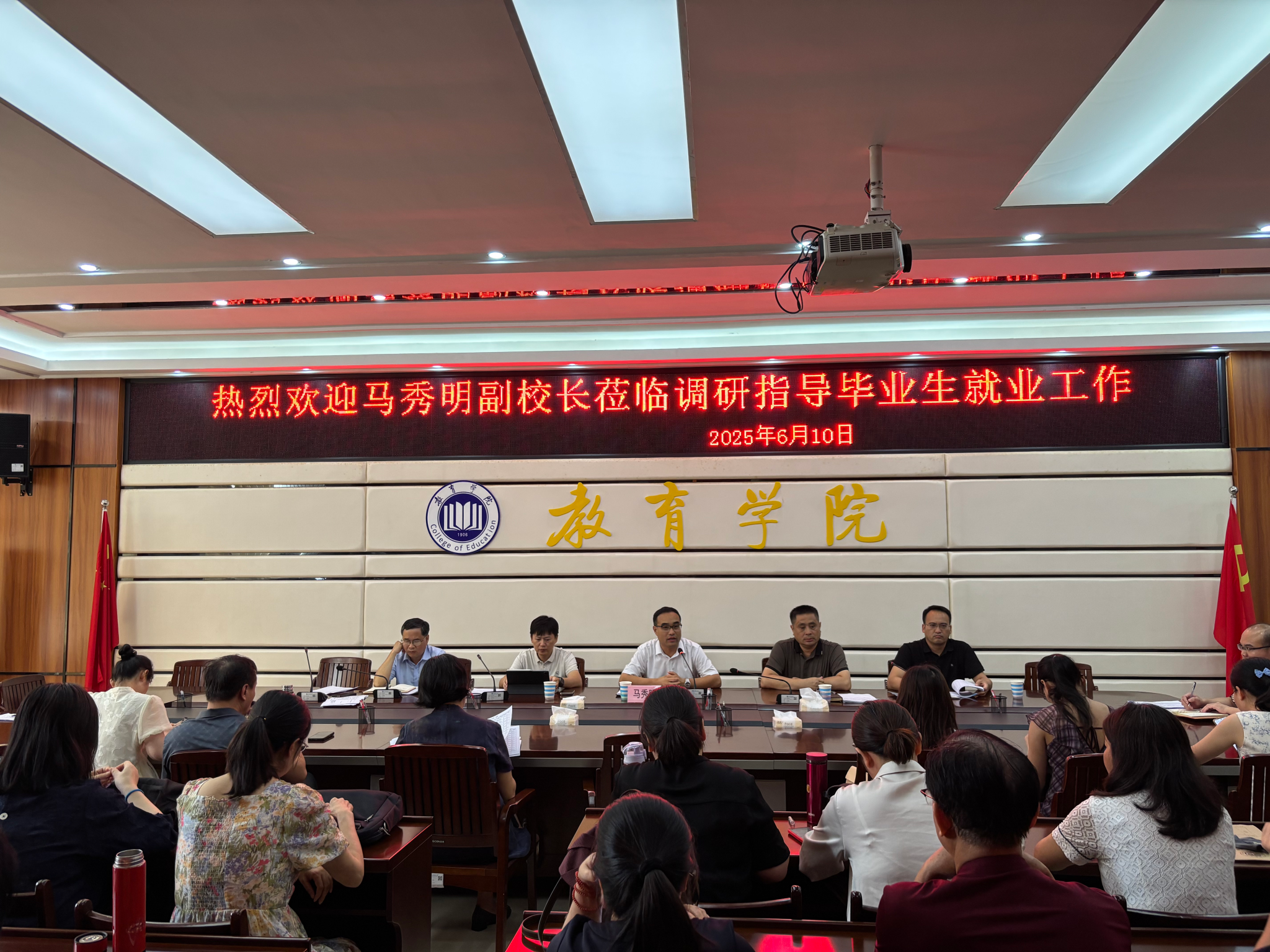 为深入贯彻落实高校毕业生就业工作要求,切实推动学校就业工作提质增效,6月10日下午,校党委常委、副校长马秀明带队到教育学院、外国语学院开展就业工作专题调研。学生工作部(处)负责人、各相关学院领导班子成员、教研室主任、毕业班班主任、辅导员等陪同参加座谈。